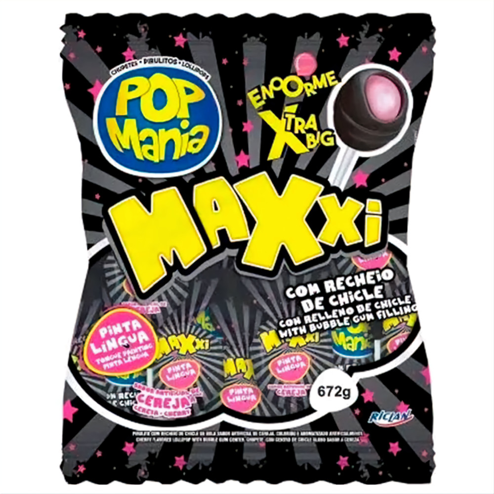 Pacote de Pirulito Pop Mania Maxxi com 24 unidades de 28g – 672g - Riclan.