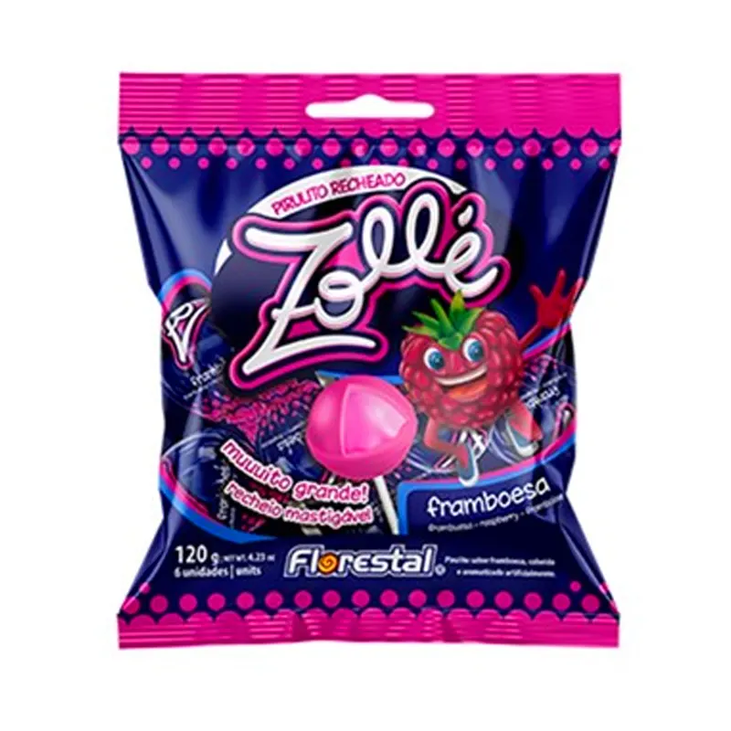 Pirulito duro com recheio mastigável sabor artificial de uva e colorido artificialmente. Deliciosos, são ideais para compor decorações de festas, lembrancinhas ou apenas para adoçar o seu dia!
