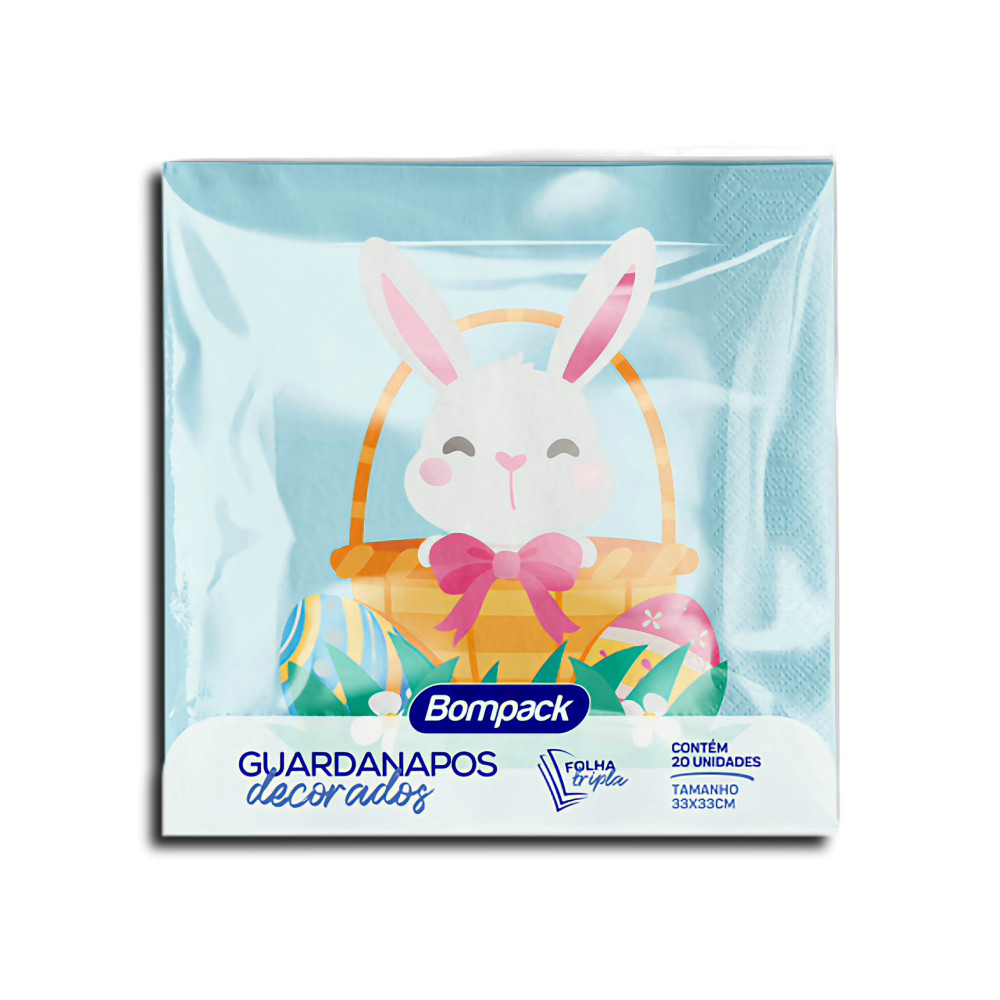 Adicione um toque encantador a mais ao seu mix de produtos com o Guardanapo Coelho da Páscoa ou Coelho e Ovo Páscoa da marca Bompack. Composta por 20 unidades por embalagem, os guardanapos possuem quantidade essencial para refeições em celebrações pascais, por exemplo.